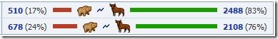 língua portuguesa é muito traiçoeira: enquanto em inglês, por exemplo, há investidores bullish e bearish, em português ninguém se considera urso e muito menos touro (com excepção dos nascidos em Maio). No entanto, ambos os termos são utilizados com frequência na definição das expectativas de evolução do mercado em geral ou de um determinado activo: estar bullish é estar optimista na expectativa da evolução dos precos; estar bearish é esperar uma tendência em baixa.